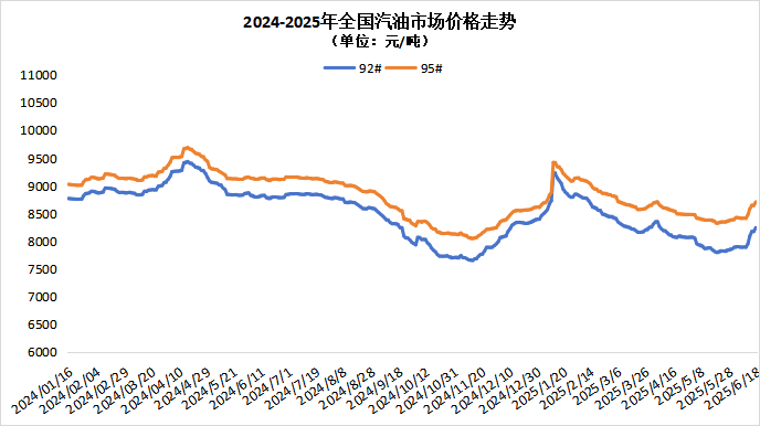 国内成品油价格按机制调整。据国家发改委网站6月17日消息,根据近期国际市场油价变化情况,按照现行成品油价格形成机制,自2025年6月17日24时起,国内汽、柴油价格每吨分别上涨260元和255元。