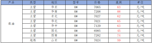 预计下一工作日主营柴油价格小涨调整;地炼厂柴油价格小幅上调。